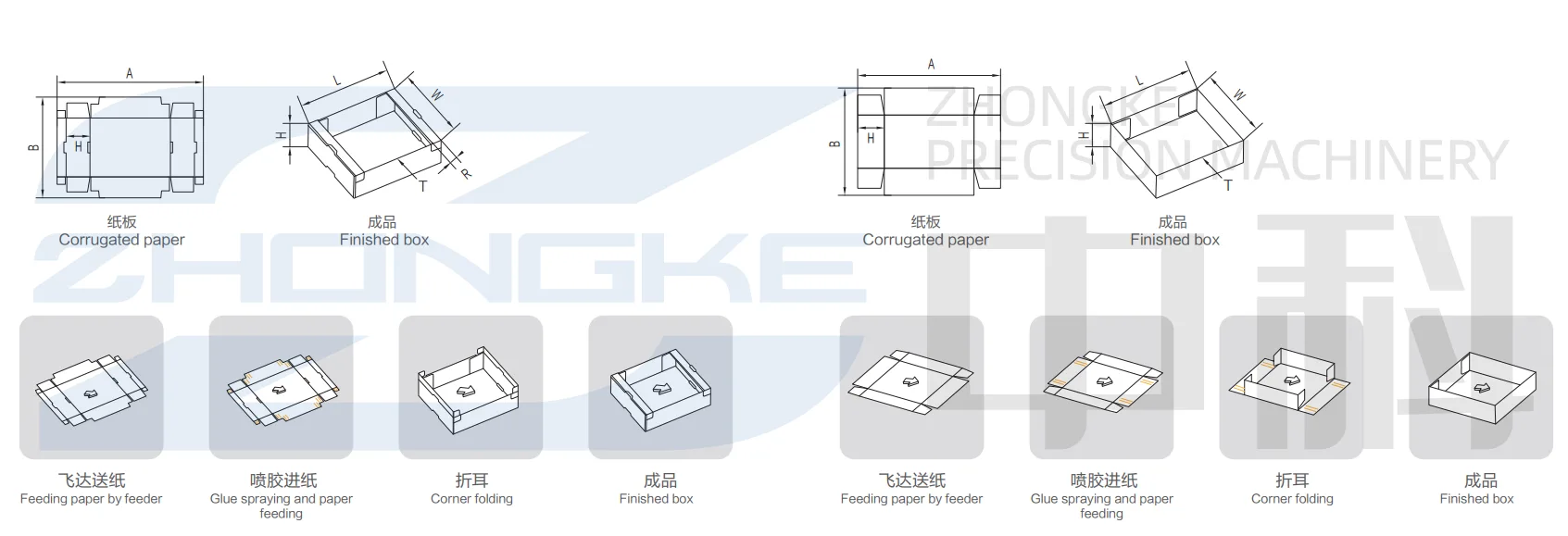 2. 盒子大小规格和运行速度受面纸尺寸及制作盒子模式的约束。