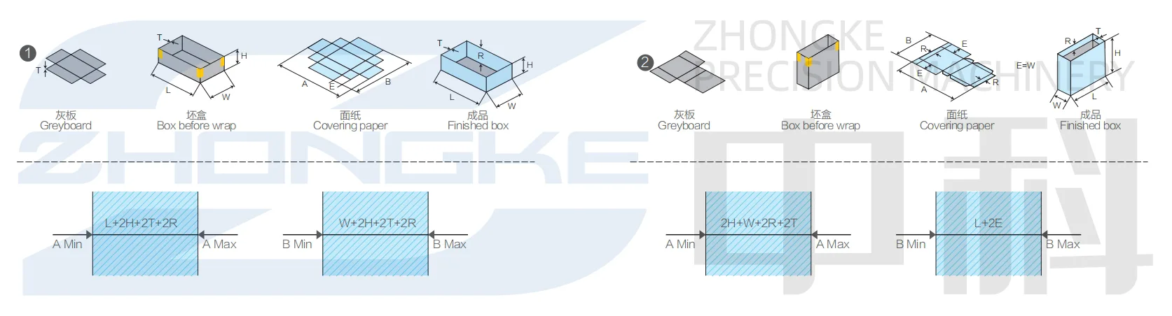 1. 盒子大小规格受面纸尺寸及制作盒子模式的约束。
