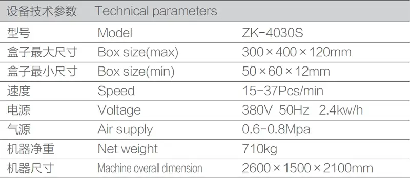 该机器采用PLC可编程控制系统、人机界面、光电感应、伺服电机驱动、多行程气缸辅助及双工位工作。具有高成型效率和卓越品质,并用于辅助生产盒子。