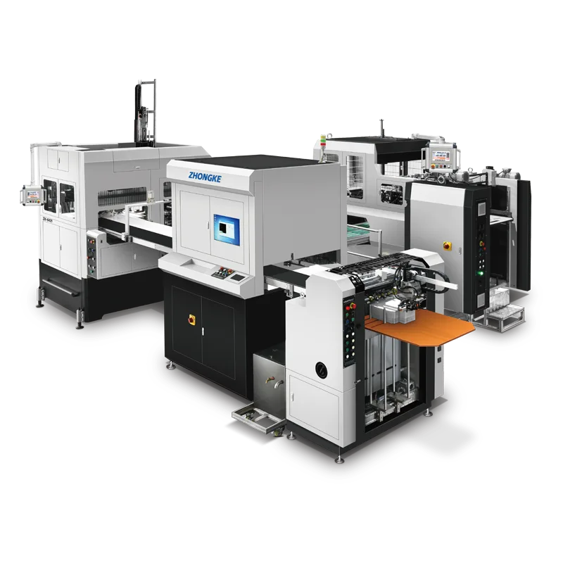 1. 全自动化工艺 – 自动裱纸、灰板定位和盒子成型。