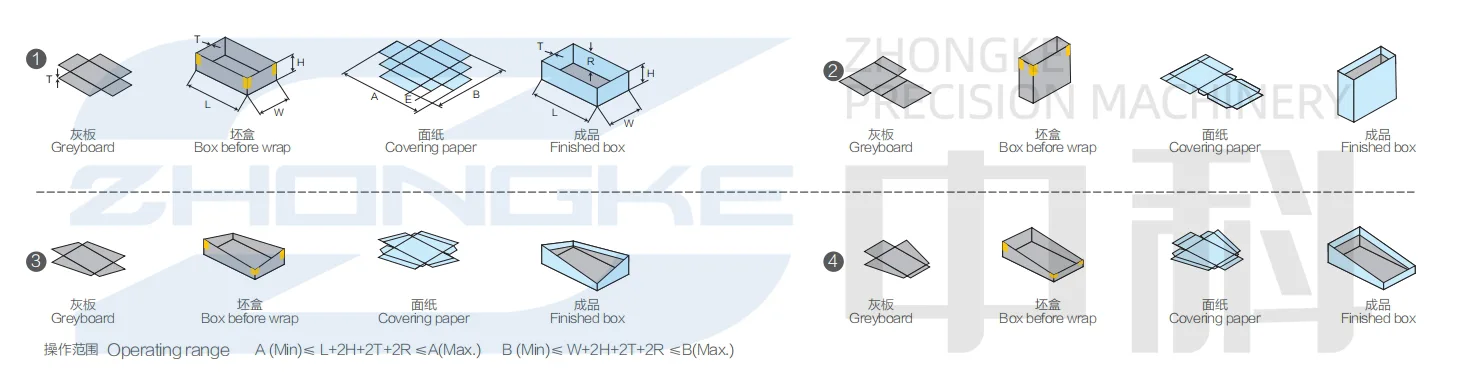 适用于生产高端硬盒,如电子产品、手机盒、珠宝盒、化妆品盒、手表盒、礼品盒等。
